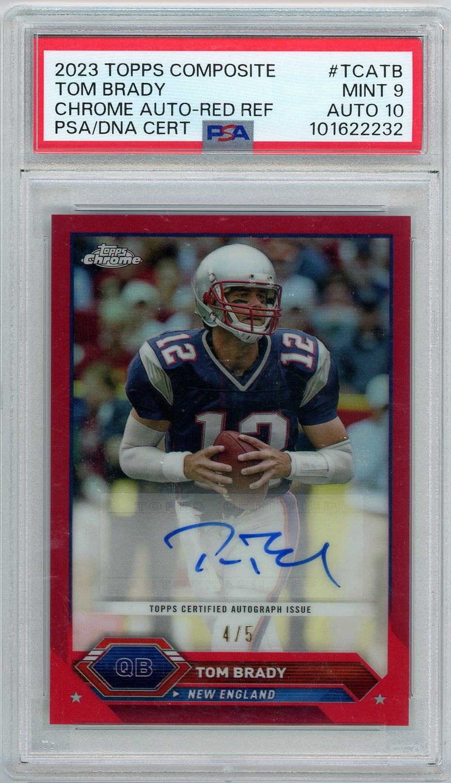 Tom Brady 2023 Topps Composite Chrome Red Auto- #’d 5 PSA 9