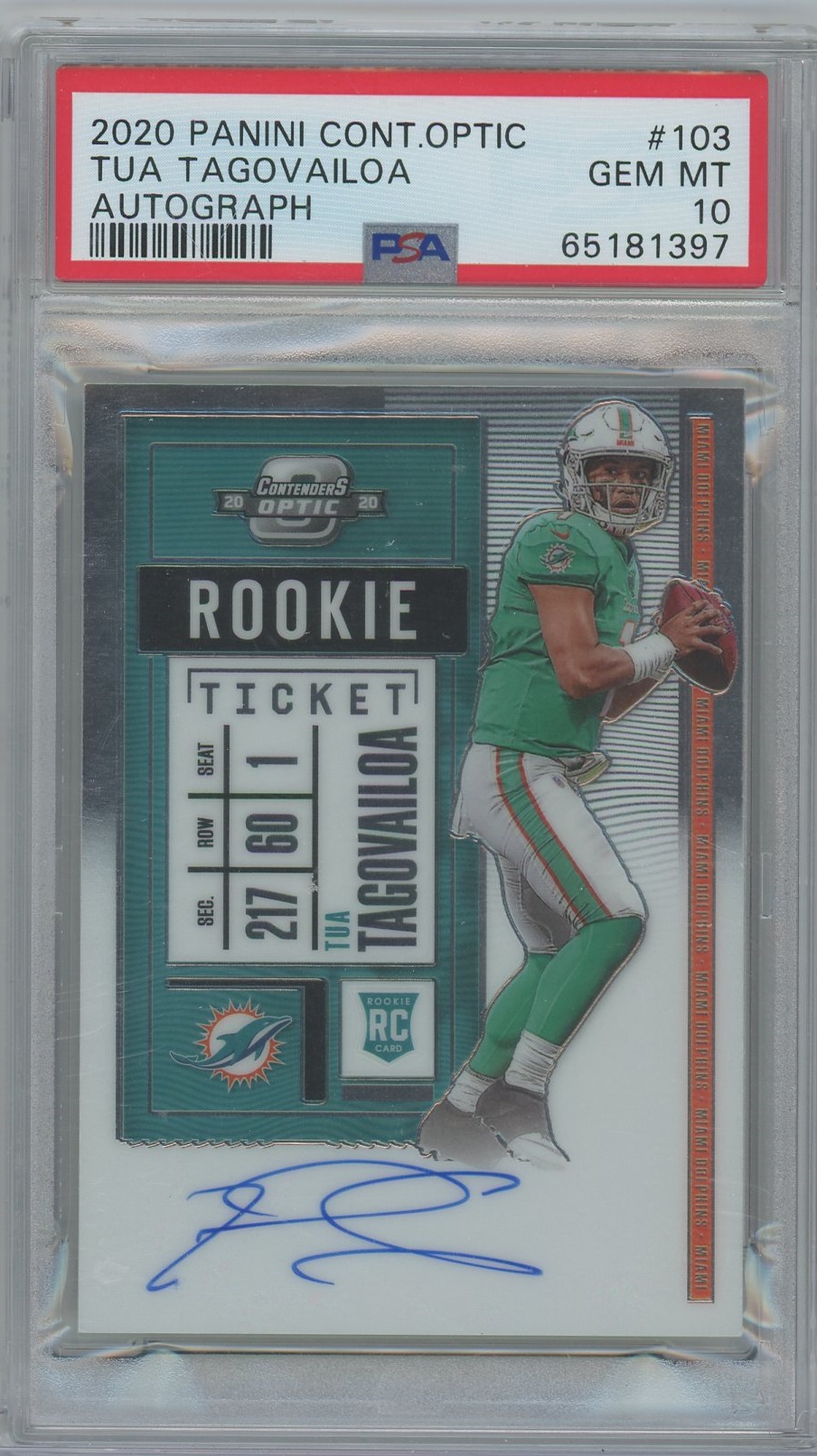 Tua Tagovailoa 2020 Contenders Optic Rookie Auto- PSA 10