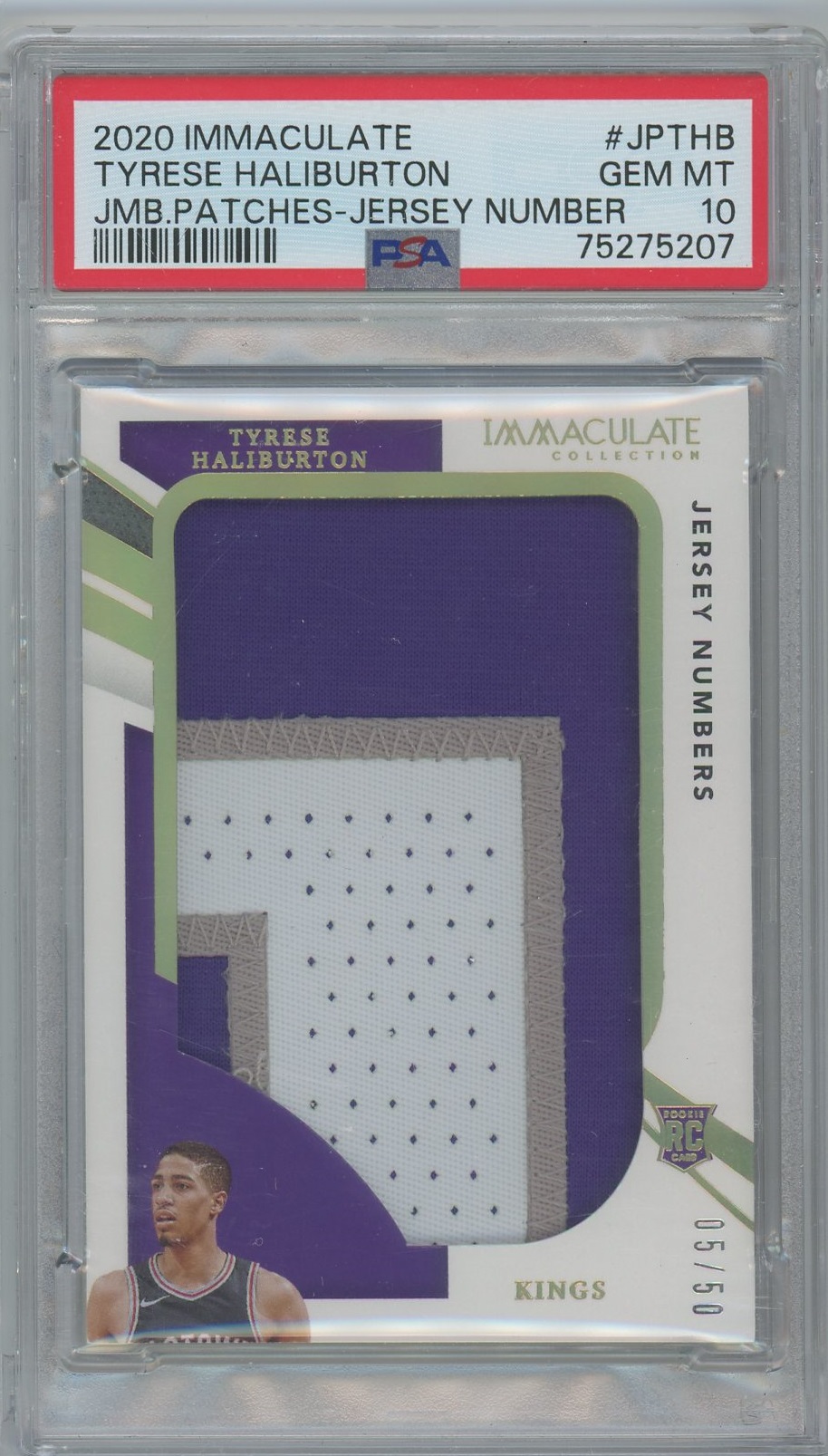 Tyrese Haliburton 20-21 Immaculate Jumbo Patch Jersey Number- #’d 50- PSA 10