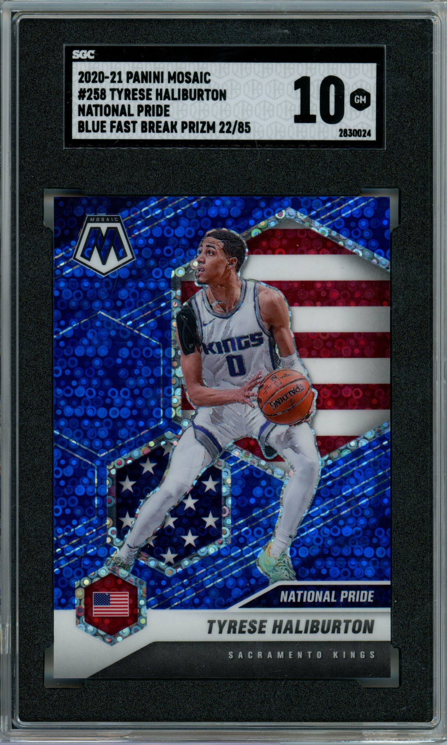 Tyrese Haliburton 2020-21 Mosaic National Pride Blue Fast Break Prizm- #’d 85- SGC 10