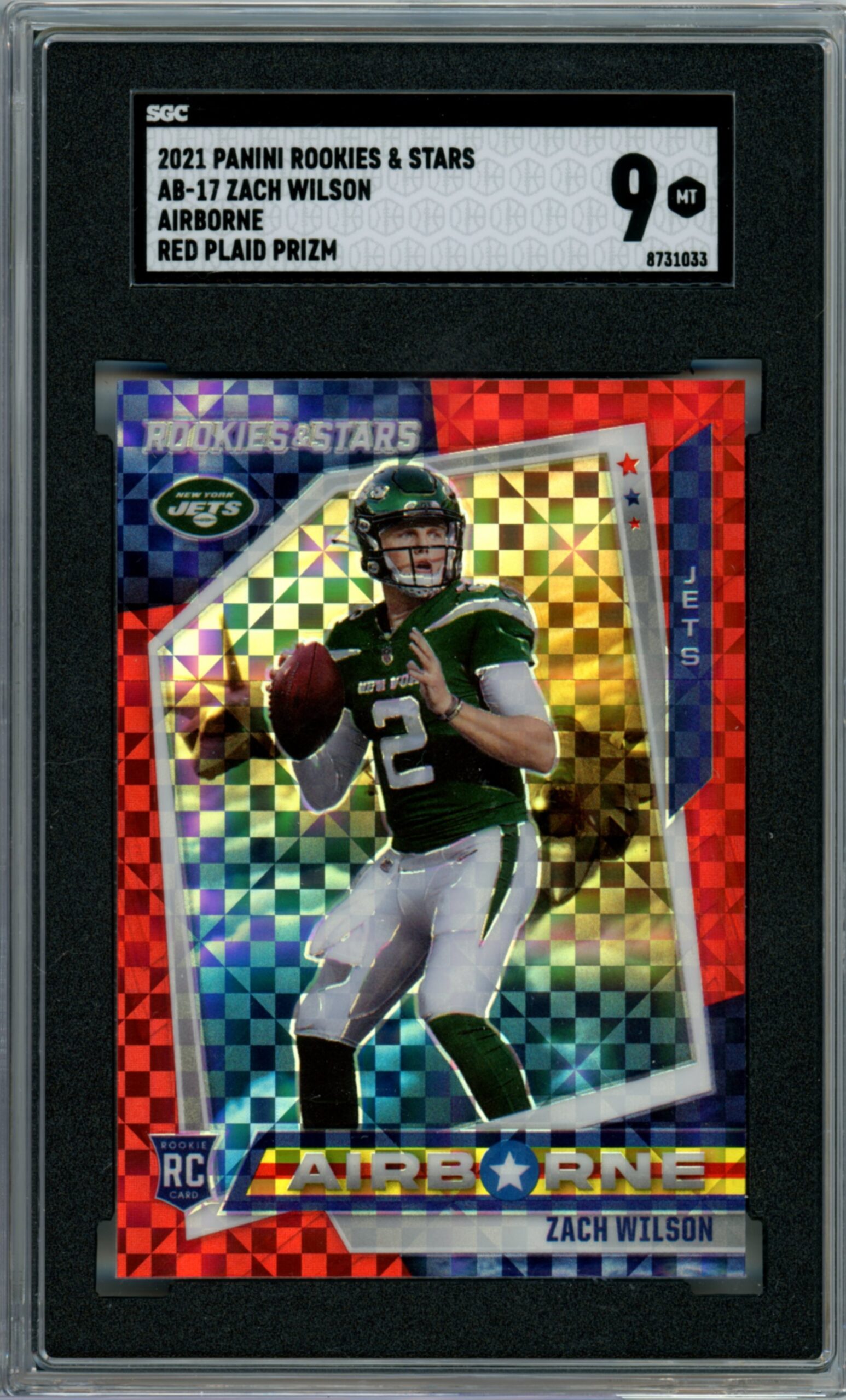 Zach Wilson 2021 Rookies and Stars Airborne Red Plaid Prizm- SGC 9