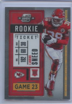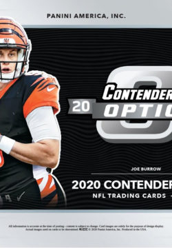 The Premium version of Contenders, Contenders Optic packs a wallop in the 6 card/1 pack box. You receive two autographs (at least one on card on average), a base card, two inserts/parallels and new this year…a base rookie! Previous iterations of Contenders Optic only featured rookie autographs or rookie inserts, but the 2020 set changes all of that, giving collectors yet another chance to pick up their favorite player’s rookie card. Great move by Panini adding these rookies to a premium set.
