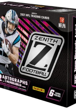 2021 Panini Zenith Football continues the brand’s cardboard coverage for a second consecutive year. Each six-card Hobby box should contain one rookie patch autograph, one additional autograph and one relic card